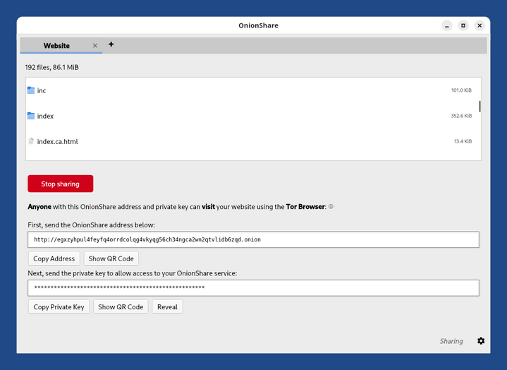 Partager des fichiers, des sites web et des salons de discussion avec OnionShare